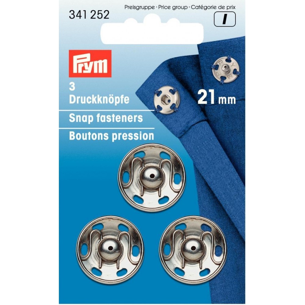 Prym Druckknöpfe zum Annähen, mit Fixierloch, Farbe: silber, Größe: 21 mm Ø, Inhalt: 3 Druckknöpfe. Material: Messing.