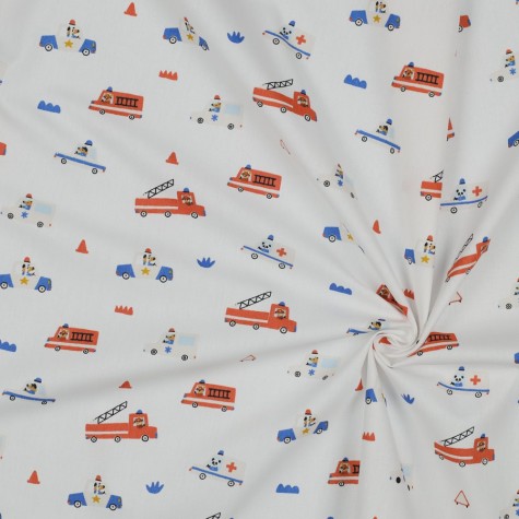 Poplin Stoff „Feuerwehr & Polizei mit Hunden“ – GOTS-zertifiziert