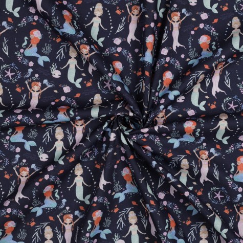 Stoff Poplin mit Meerjungfrauen-Motiv – Perfekt für kreative Nähprojekte und Kinderbekleidung