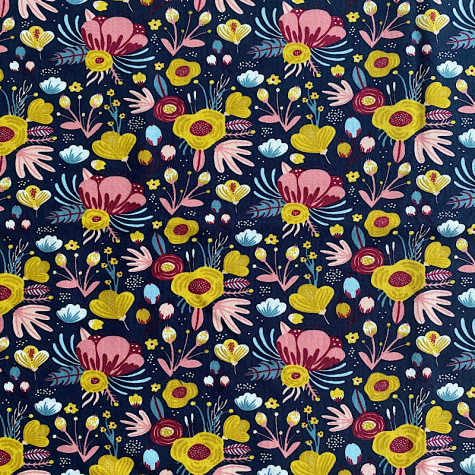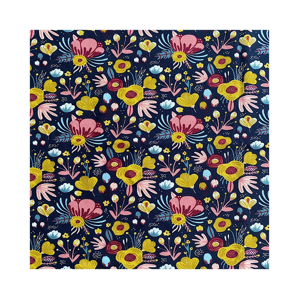 Wunderschöner Baumwolljersey im trendigen floralen Design. Perfekt für das Nähen von Kleidungsstücken wie Hosen, Röcke, Kleider, Beanie Mützen, Hoodies, Leggings Pumphosen, uvm.