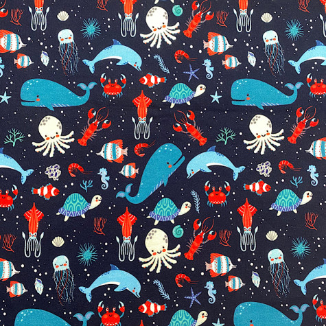 Wunderschöner Baumwolljersey mit Piraten. Perfekt für das Nähen von Kleidungsstücken wie Hosen, Röcke, Kleider, Beanie Mützen, Hoodies, Leggings Pumphosen, uvm.