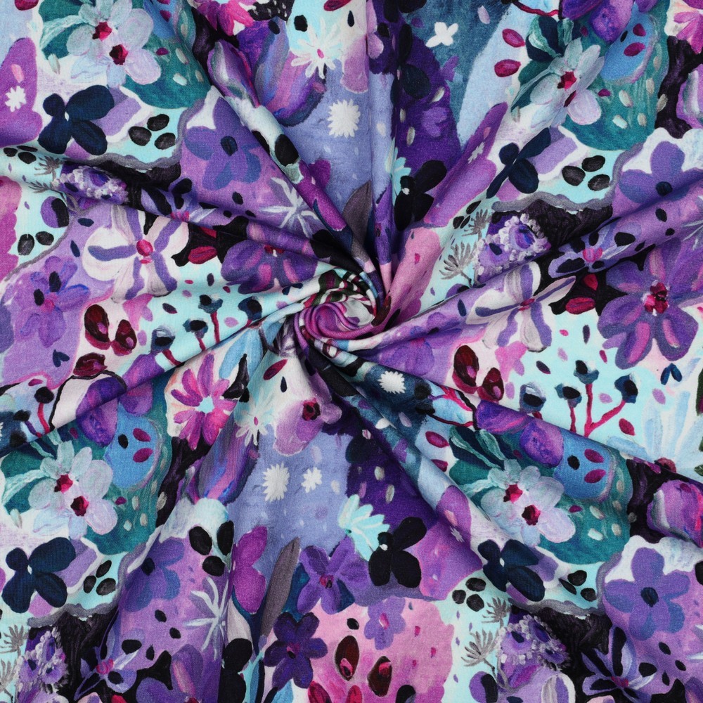Unser moderner Sweat Digital Settle Petal Nerida in Lila ist der ideale Stoff für kreative Nähprojekte. Der weiche Baumwollstoff mit Elasthan bietet eine angenehme Elastizität und hohen Tragekomfort. Das elegante Digitaldruck-Design mit zarten Blumenmotiven macht diesen Stoff zu einem Blickfang für Kinder- und Babykleidung, Loungewear, Accessoires und Heimtextilien.